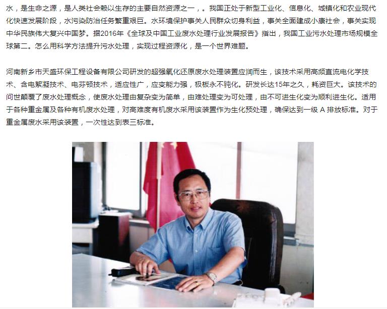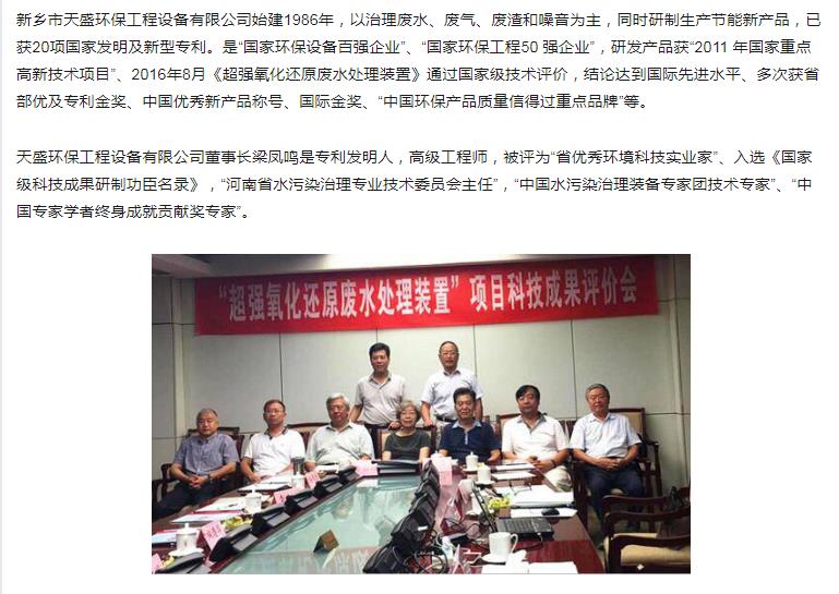 中國高新技術(shù)網(wǎng)發(fā)布:《關(guān)注:解碼科技創(chuàng)新》——新鄉(xiāng)市天盛環(huán)?!俺瑥娧趸€原廢水處理技術(shù)”
