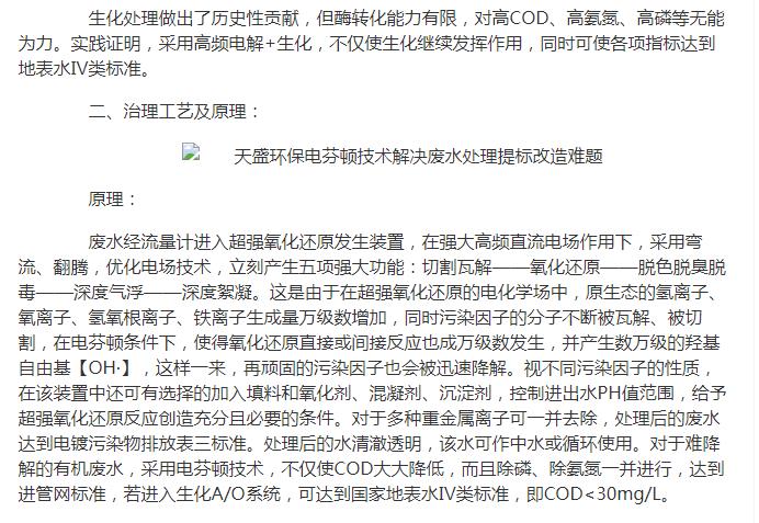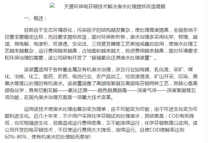 亞洲在線刊登:天盛環(huán)保電芬頓技術(shù)解決廢水處理提標改造難題
